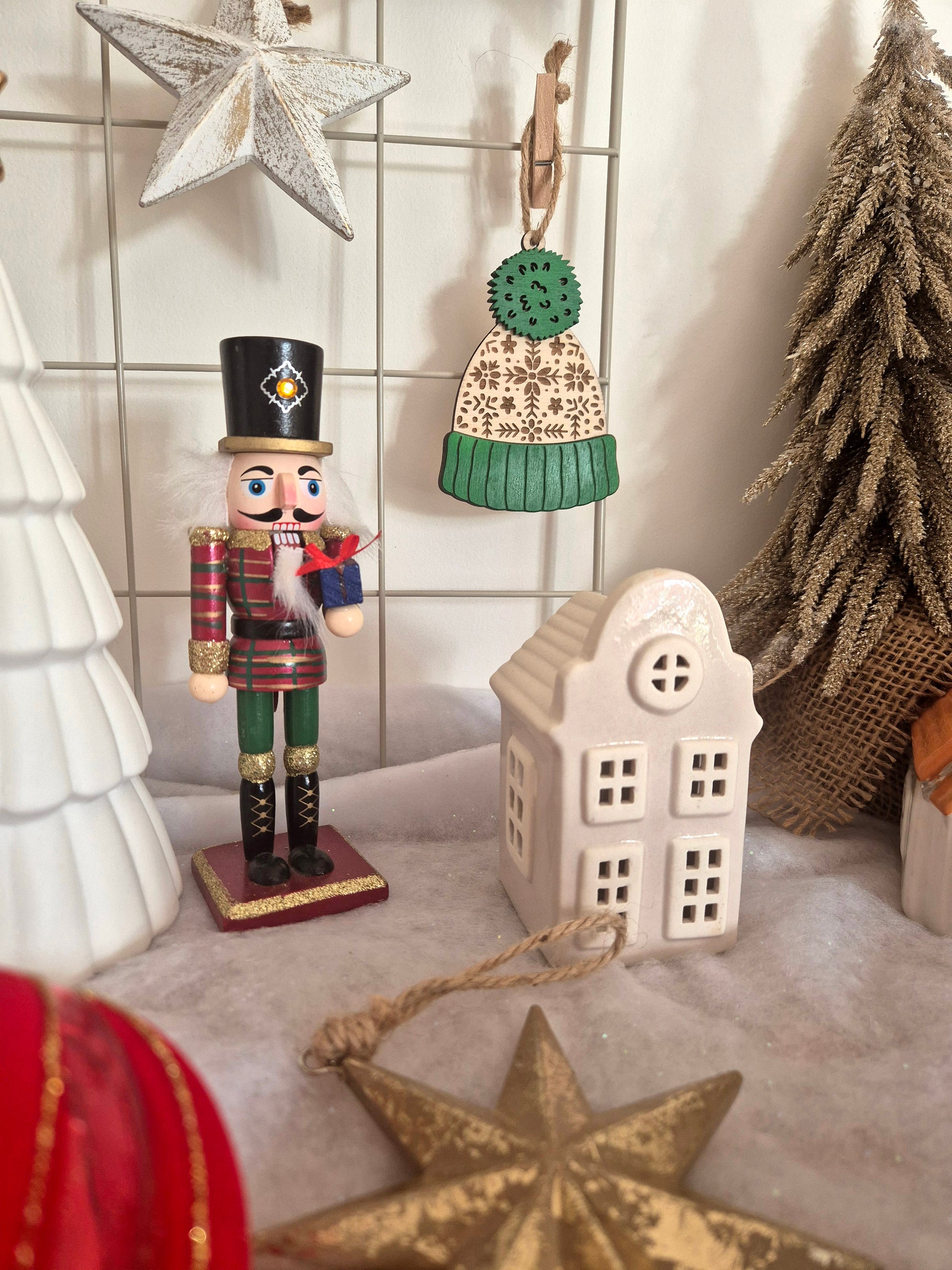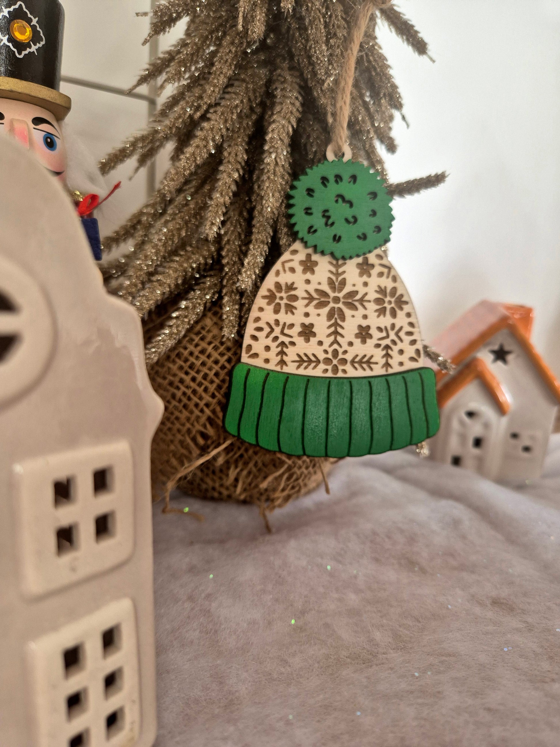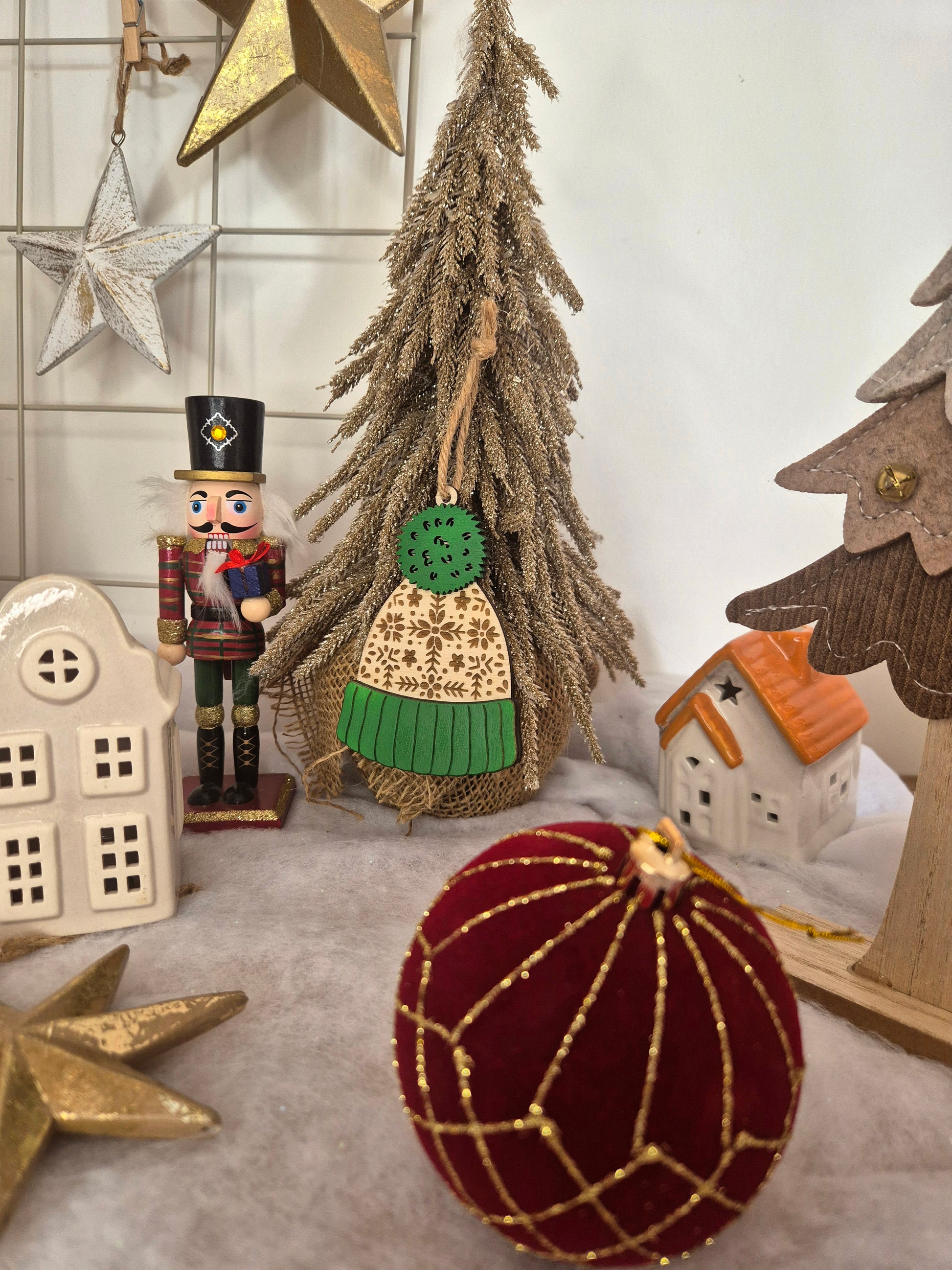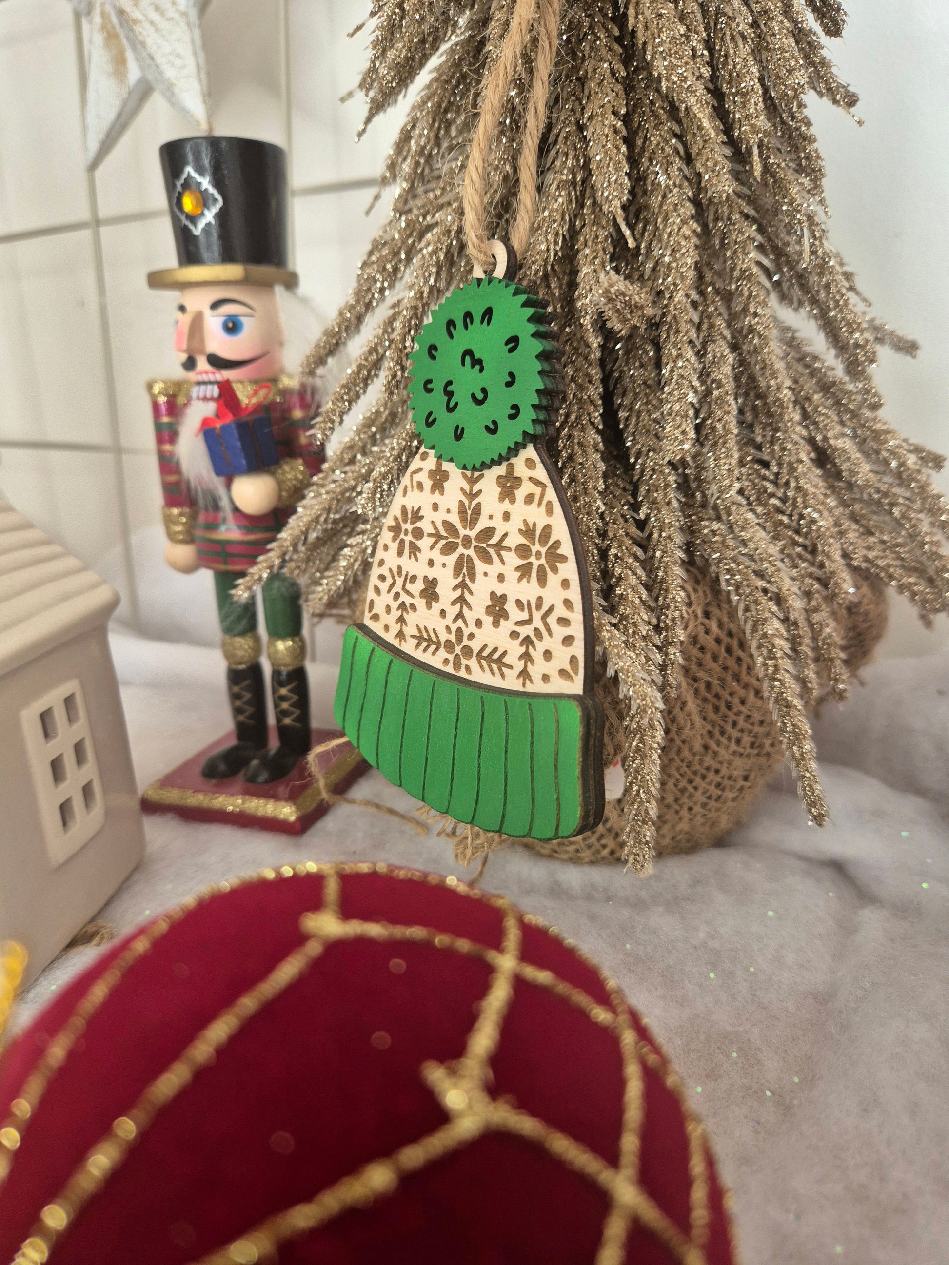 Apportez une touche cocooning à votre sapin avec cette adorable suspension en forme de bonnet d’hiver. Ses motifs gravés façon tricot nordique et son pompon vert lui donnent un charme chaleureux et authentique. Parfaite pour une décoration de Noël naturelle et pleine de douceur, elle s’accorde à merveille avec les ambiances boisées et féeriques.