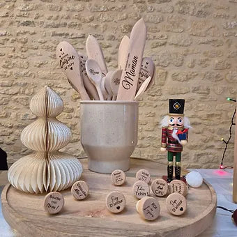 Le bois est un produit naturel dont nous ne pouvons pas contrôler les aspects, la présence de stries naturelles et différentes selon chaque pièce. Le bois est un matériau naturel, les créations peuvent des teintes différentes et la gravure peux être plus ou moins foncée. Il est donc possible que votre création varie légèrement visuellement des photos de la création.